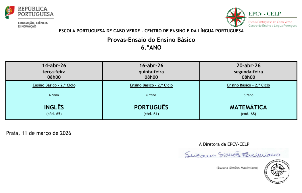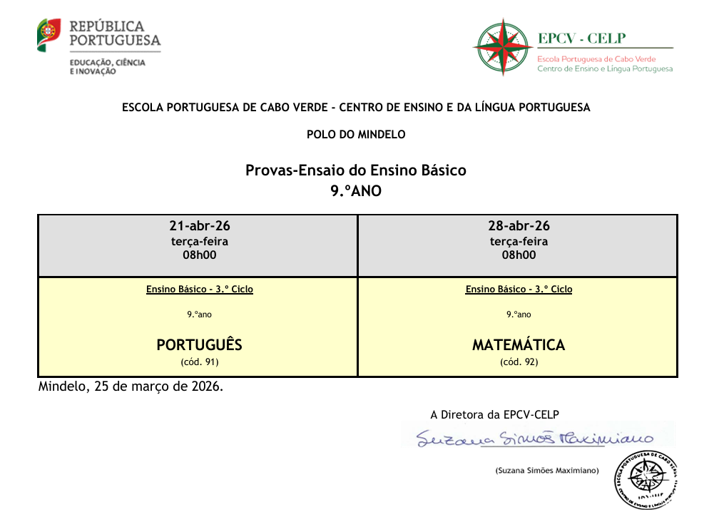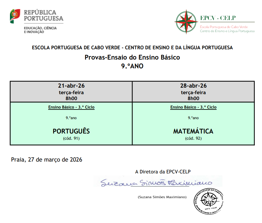 - 1.ª fase: de 6 a 19 de março de 2026 (no 9.º ano, para os alunos internos, não é necessária inscrição nas provas finais)