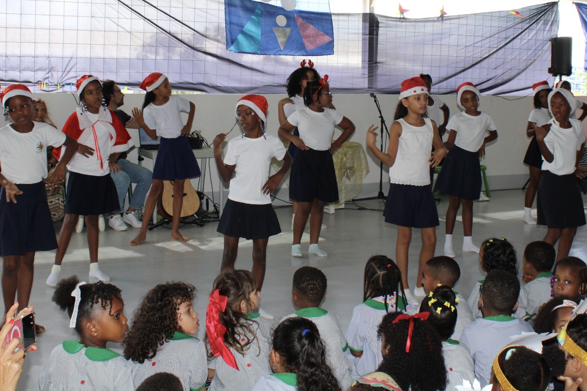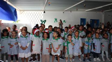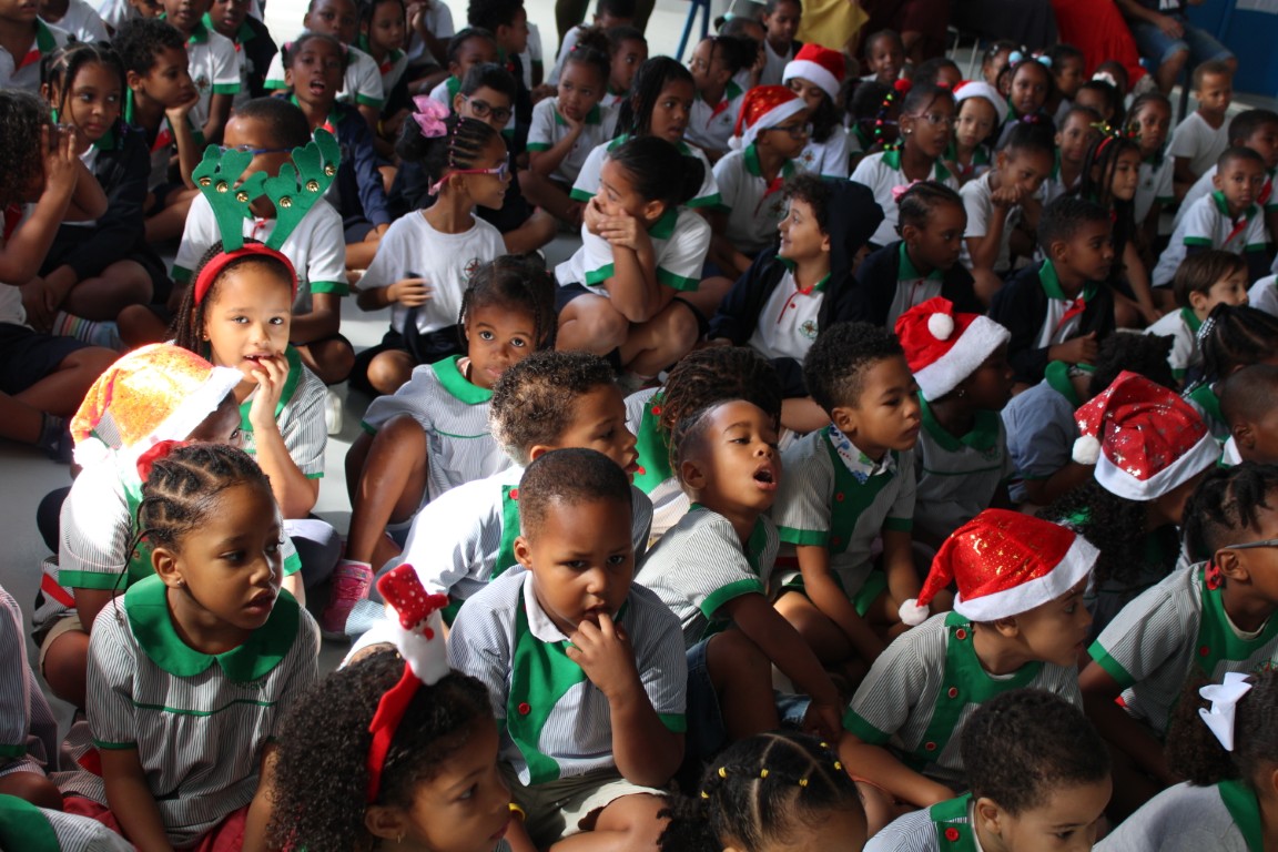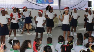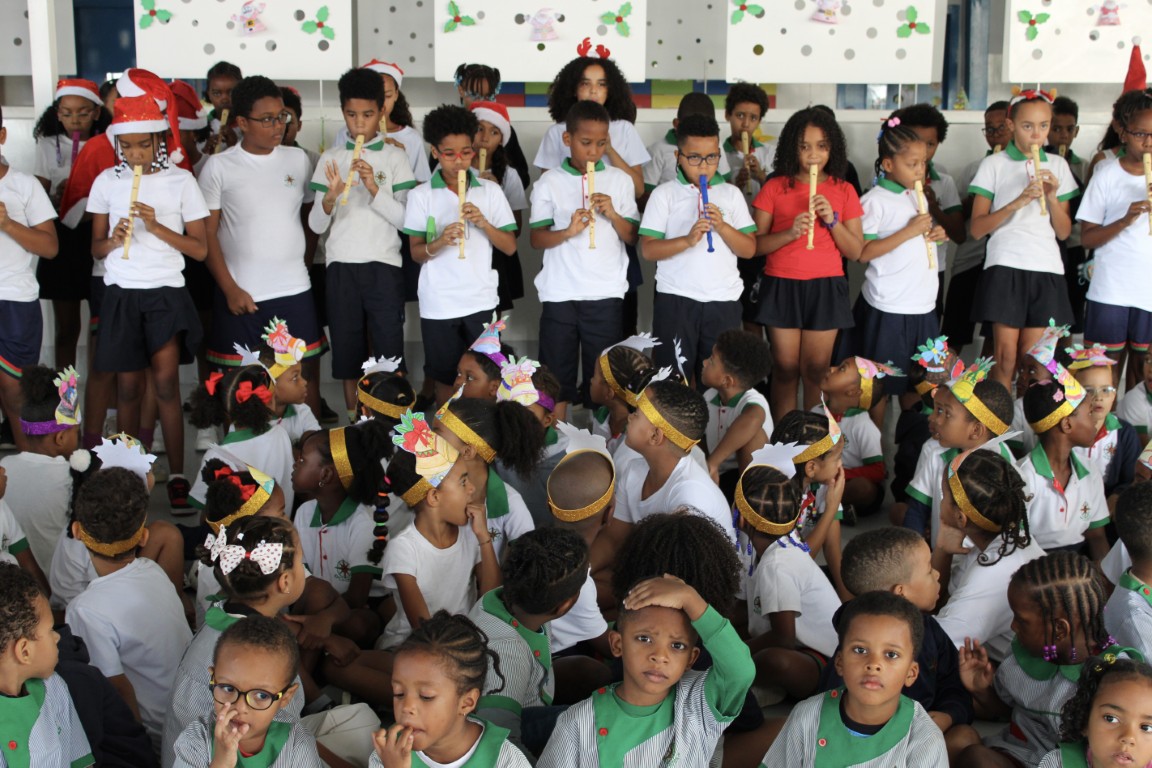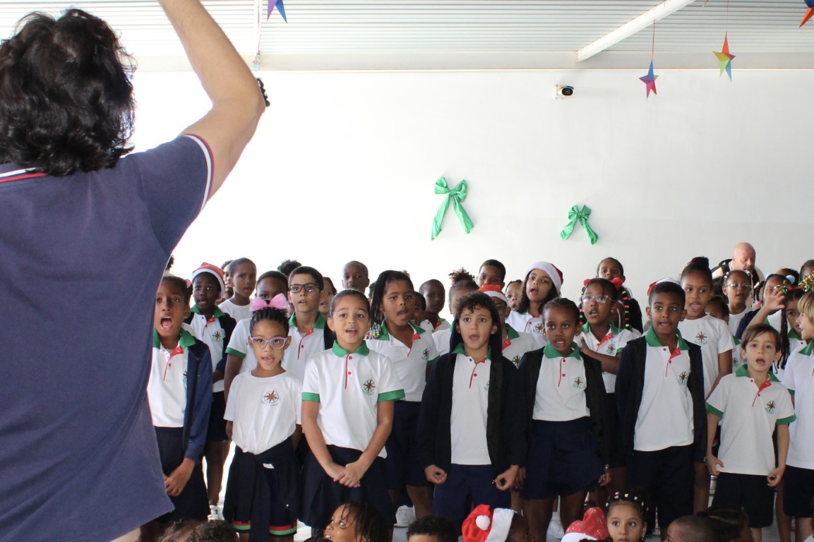 No passado dia 16 de dezembro, os alunos do Pré-Escolar e do 1.º Ciclo apresentaram várias músicas de Natal, cantando e encantando todos os presentes. Com canções como o “Pinheiro”, “Sinos de Natal”, “Natal Branco”, “Pai Natal veio à cidade”, “Natal não é deleite” ou “Somos a Vida”, passando ainda por uma apresentação em flauta e pela apresentação de uma dança, foram momentos muito animados, que encerraram as aulas e o primeiro período para estes alunos.
