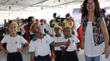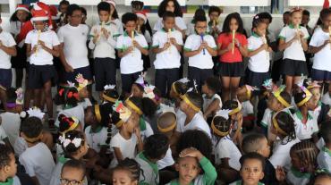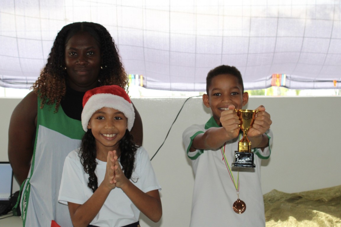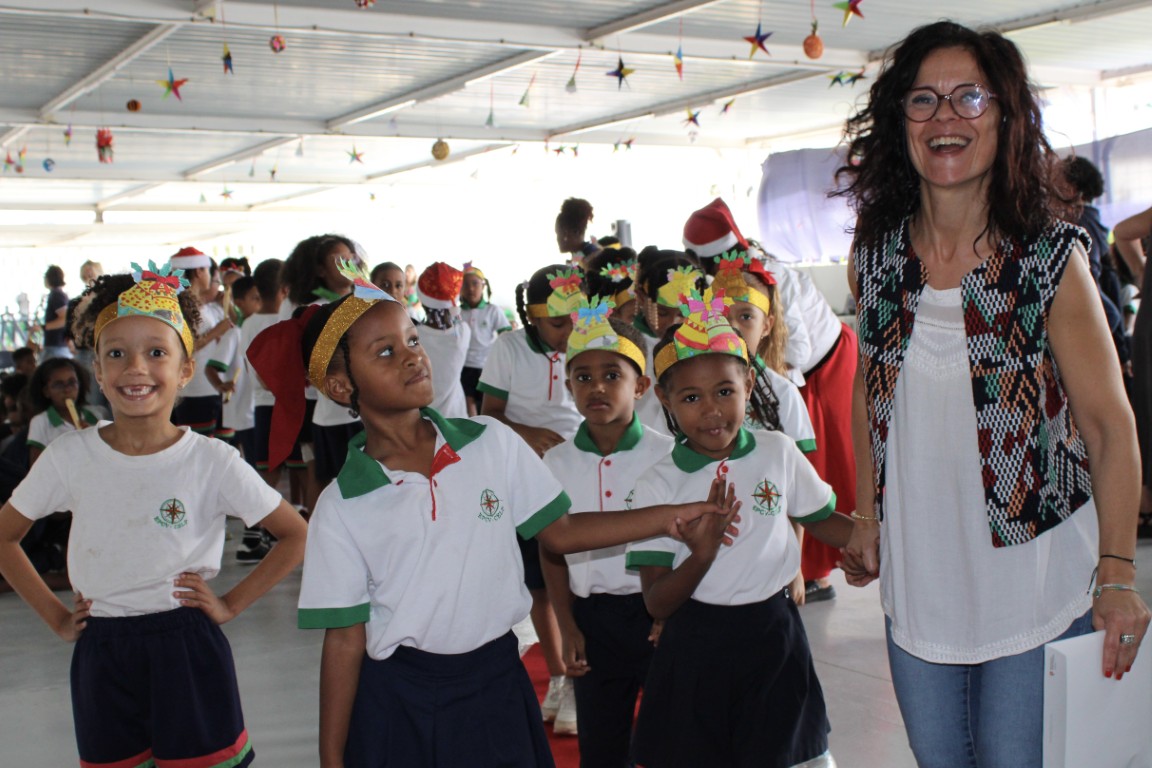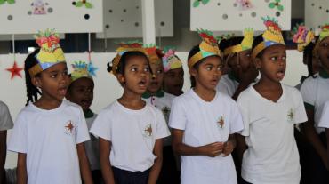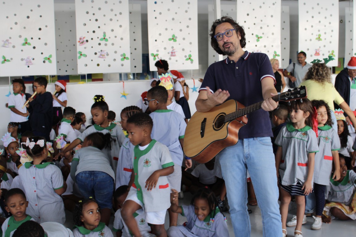 No passado dia 16 de dezembro, os alunos do Pré-Escolar e do 1.º Ciclo apresentaram várias músicas de Natal, cantando e encantando todos os presentes. Com canções como o “Pinheiro”, “Sinos de Natal”, “Natal Branco”, “Pai Natal veio à cidade”, “Natal não é deleite” ou “Somos a Vida”, passando ainda por uma apresentação em flauta e pela apresentação de uma dança, foram momentos muito animados, que encerraram as aulas e o primeiro período para estes alunos.